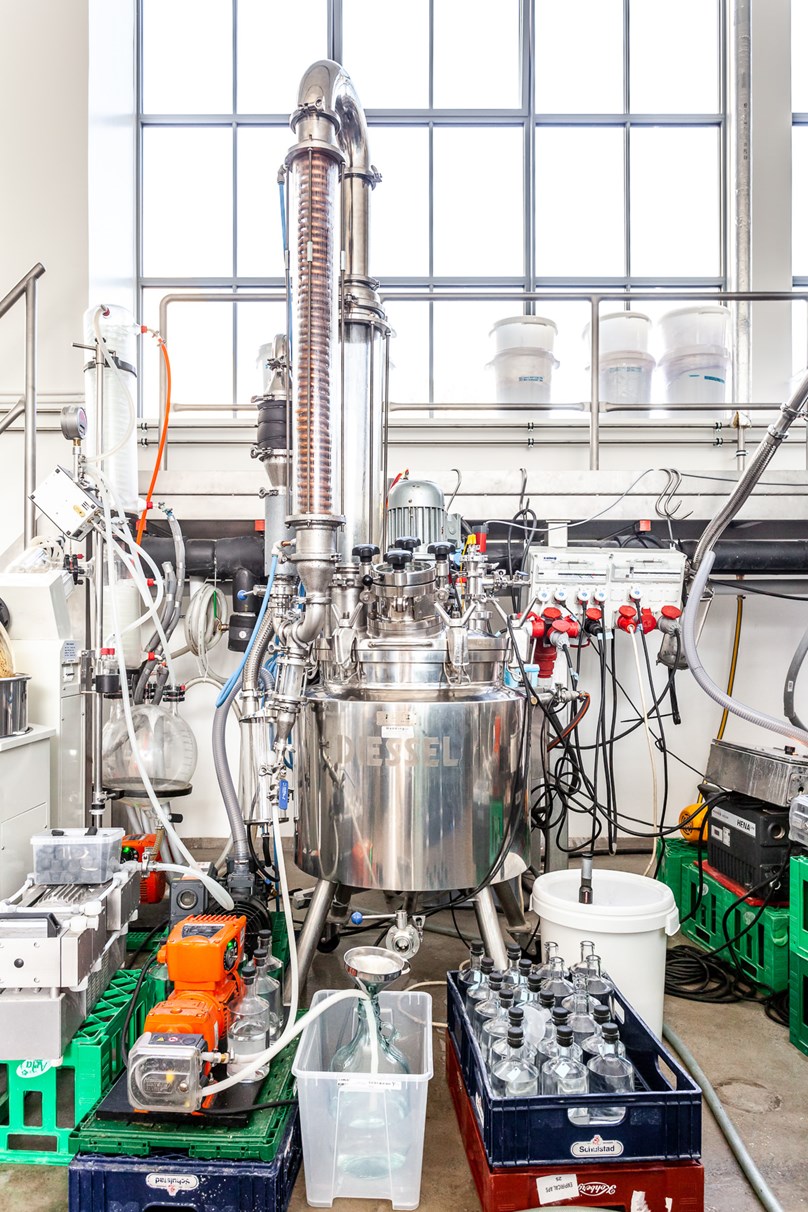 Den beiden ist bei ihrer Arbeit nichts heilig. Althergebrachte Zutaten wie Obst, Trauben oder Getreide werden von hausgemachten Kombuchas und Essigen abgelöst und Brände bei gerade mal 5-15°C unter Vakuum destilliert. Dabei entstehen besonders klare und harmonische Aromen, die ein Dinner perfekt ergänzen. Wir freuen uns sehr, die Kreationen der beiden innovativen Schnapsbrenner bei uns anbieten zu können.