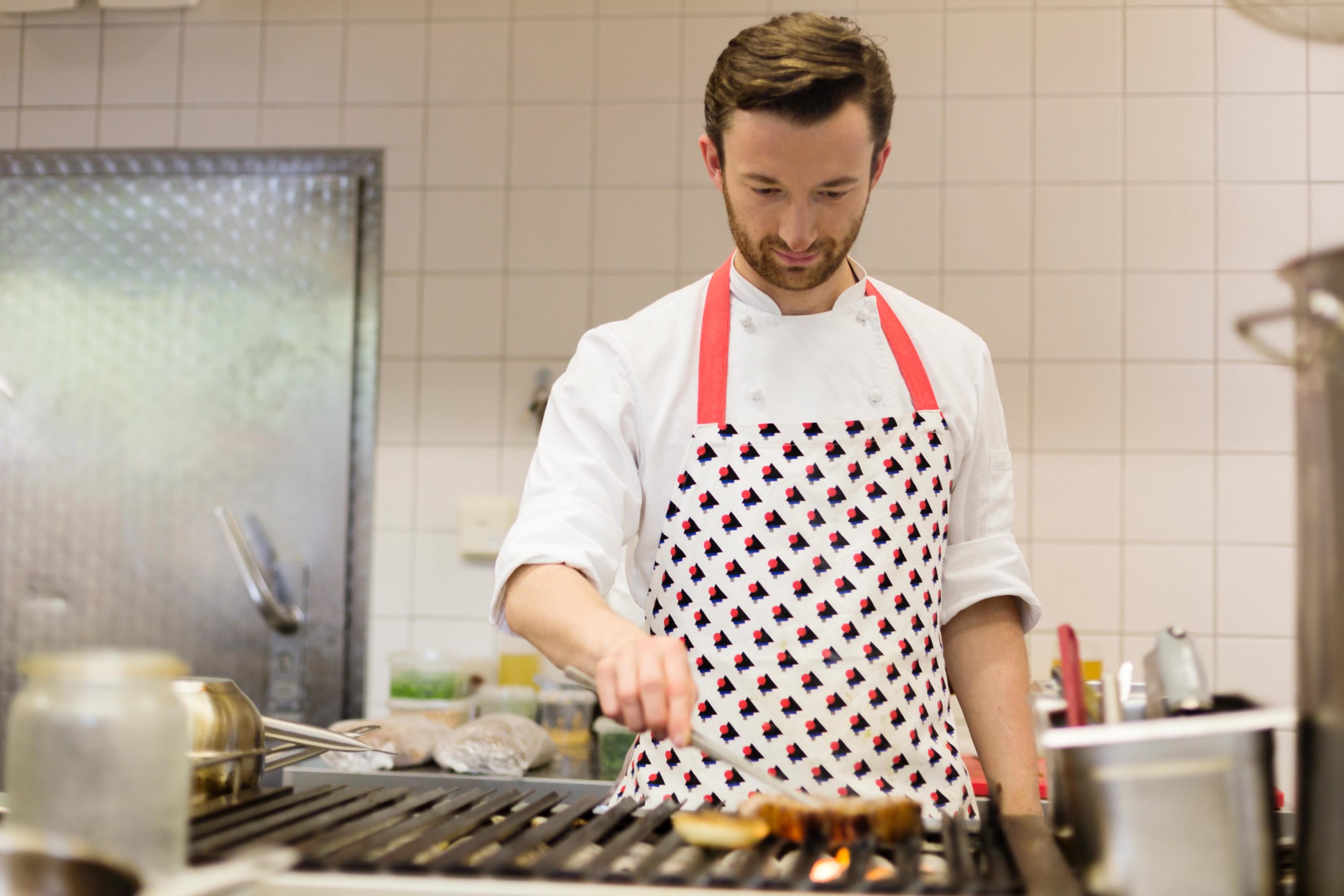 Zudem ist für uns Köche auch das Handwerk sehr wichtig. Steak und Hühnerbrust, die vermeintlich edlen Teile, sind sehr einfach zu verarbeiten, haben aber auch zu einer Ödnis in der Küche geführt. „Pink in plastic“, hat der Begründer der Nose to Tail-Küche, der Brite Fergus Henderson, das vorportionierte Supermarkt-Fleisch einmal genannt. Hübsch anzusehen und einfach kochen. Für das Zerteilen eines ganzen Tieres und die Zubereitung als Kotelett, Blutwurst oder Pastete (Galatine) ist hingegen sehr viel Know-how von Nöten, wobei in der Folge natürlich auch ganz andere Ergebnisse zu erzielen sind. Diese komplexen Geschmackserlebnisse machen unsere Arbeit aus. Wir lieben es, auf Basis von Knochen und Gemüse Soßen zu kochen, einen Schweinebauch 12 Stunden bei 63 Grad zu garen oder Koteletts im eigenen Fett zu veredeln. Das Wissen dazu haben wir und die Zeit nehmen wir uns, weil wir auf diese Weise unsere Esskultur erhalten und das praktizierte Wissen an unsere Auszubildenden weitergeben können. Denn auch das ist Teil unserer Arbeit.